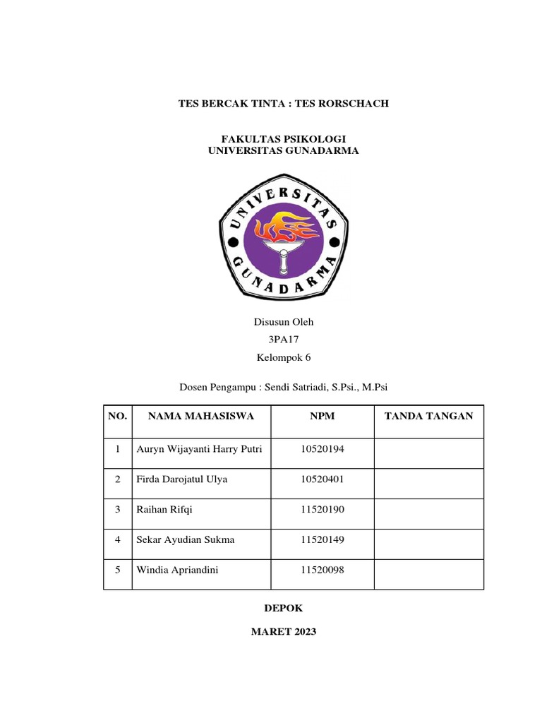 Subandi, M.A., dan Ratna Wulan. 2002. TES RORSCHACH: Administrasi dan