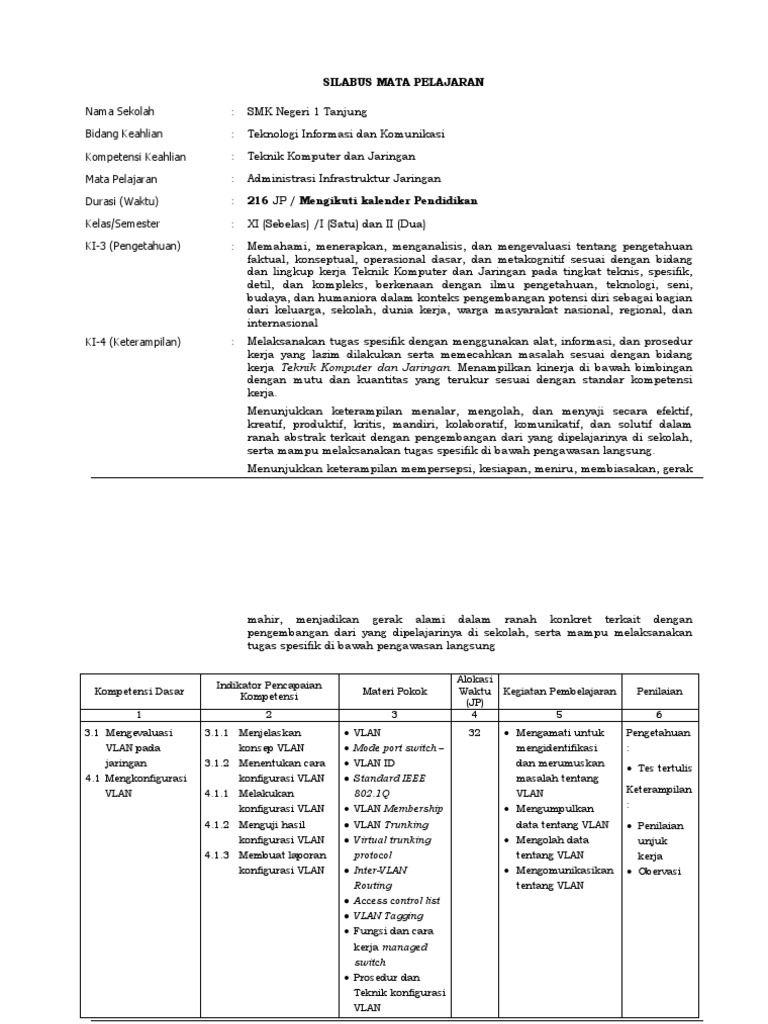 Durasi (Waktu) : 216 JP / Mengikuti kalender Pendidikan