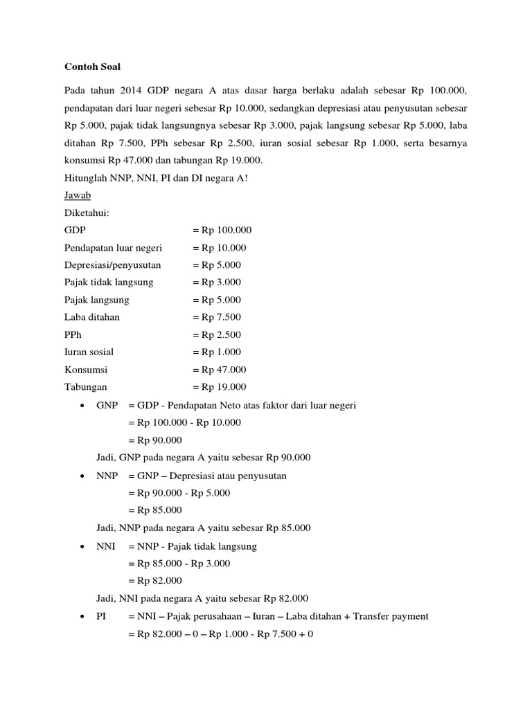 Jadi, NNI pada negara A yaitu sebesar Rp 82.000