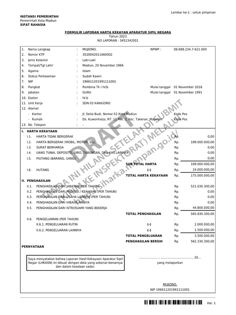Saya menyatakan bahwa Laporan Hasil Kekayaan Aparatur Sipil