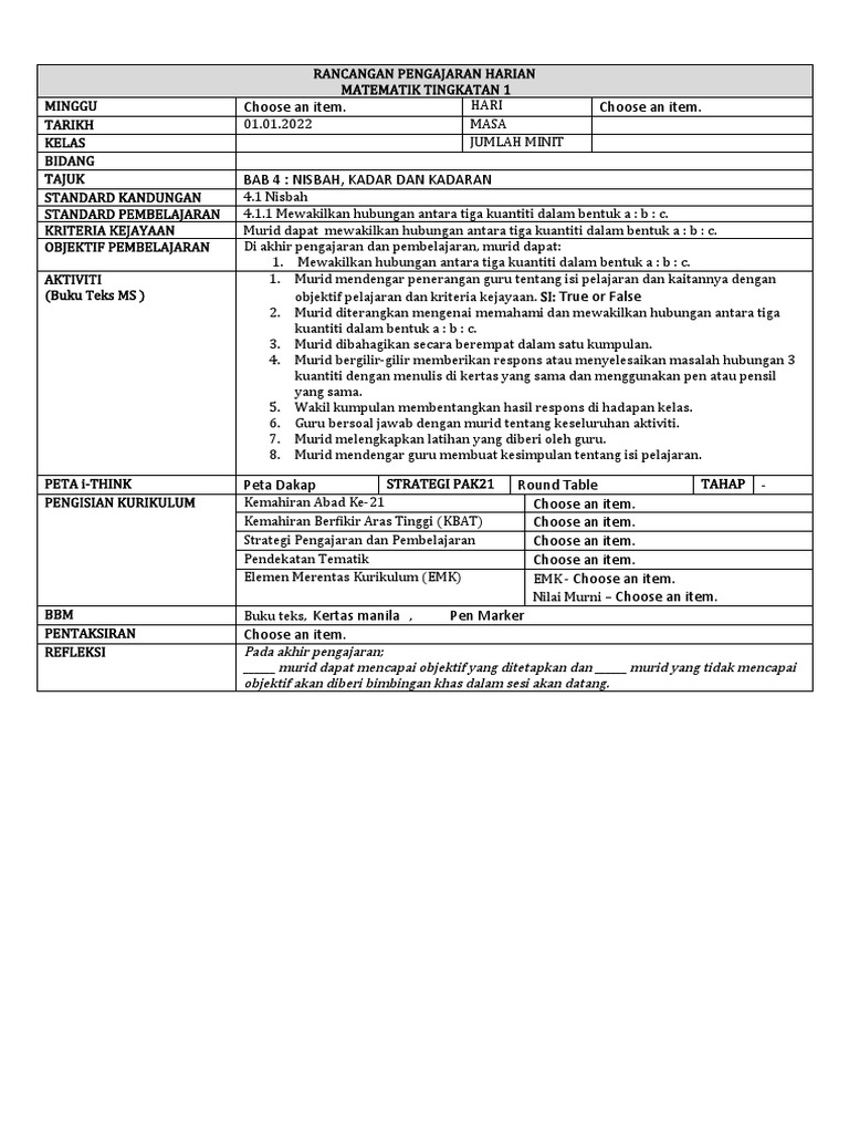 PENGISIAN KURIKULUM Kemahiran Abad Ke-21 Choose an item.
