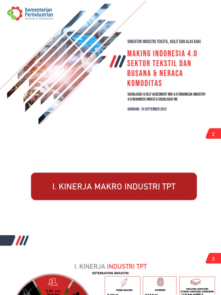1. Implementasi industri 4.0 untuk sektor tekstil dan busana, melalui Program Restrukturisasi