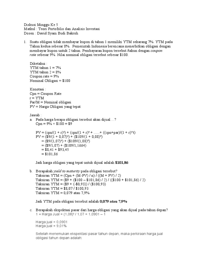 b. Berapakah yield to maturity pada obligasi tersebut?