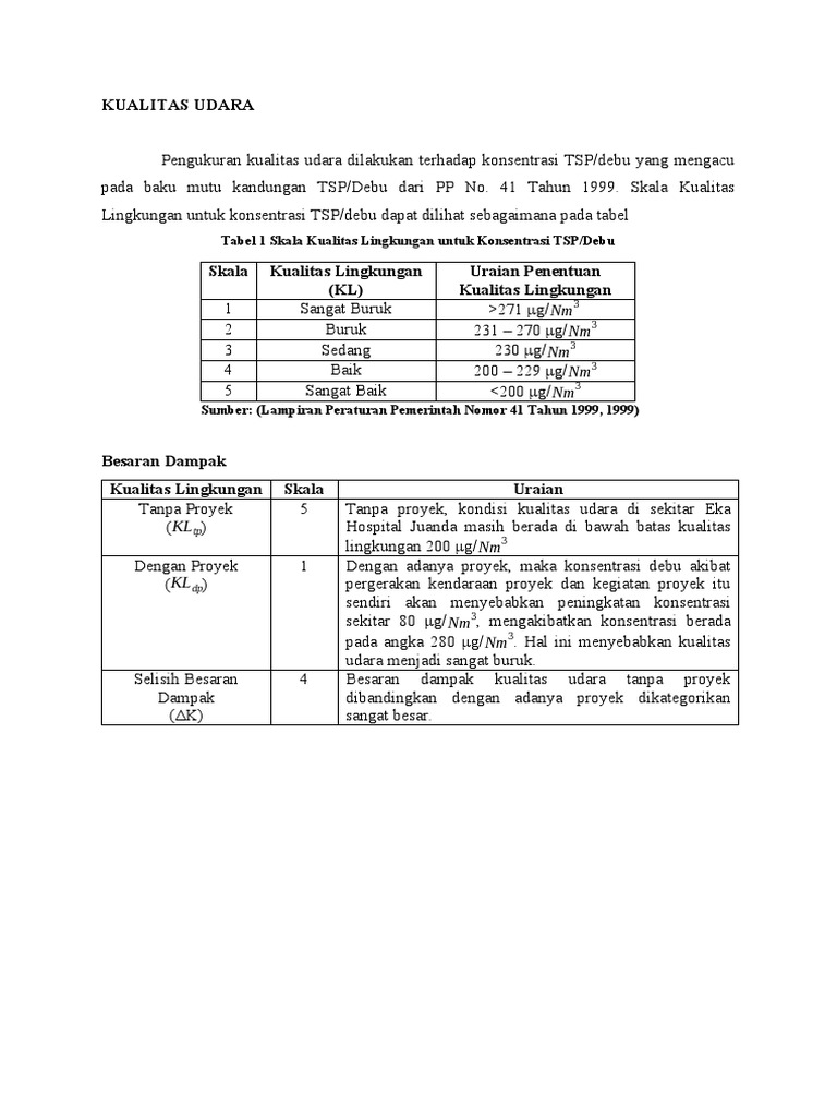 Tabel 1 Skala Kualitas Lingkungan untuk Konsentrasi TSP/Debu
