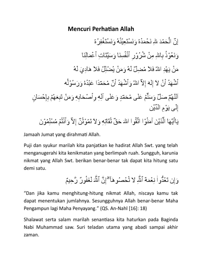 perhatian manusia pada kita. Semoga kita mampu istiqamah. Aamiin.