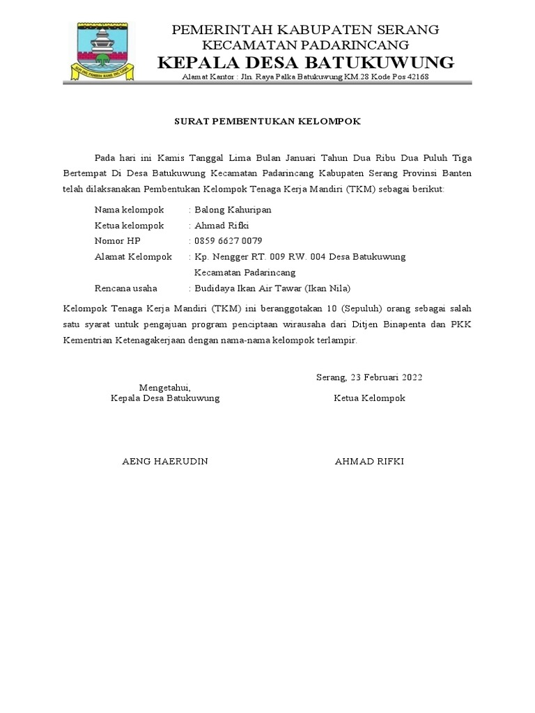 SURAT PEMBENTUKAN KELOMPOK