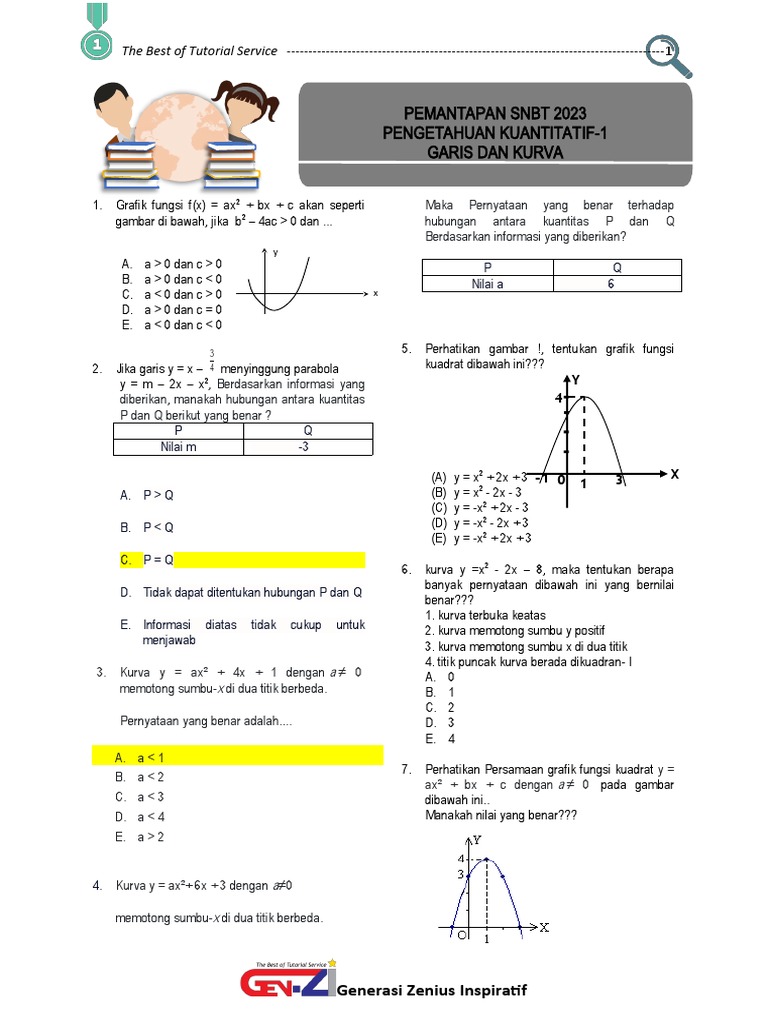 7. Perhatikan Persamaan grafik fungsi kuadrat y =