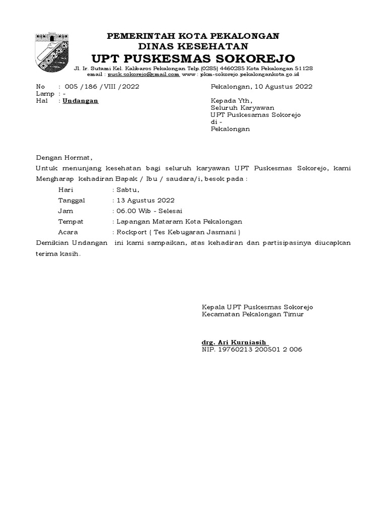 No : 005 /186 /VIII /2022 Pekalongan, 10 Agustus 2022