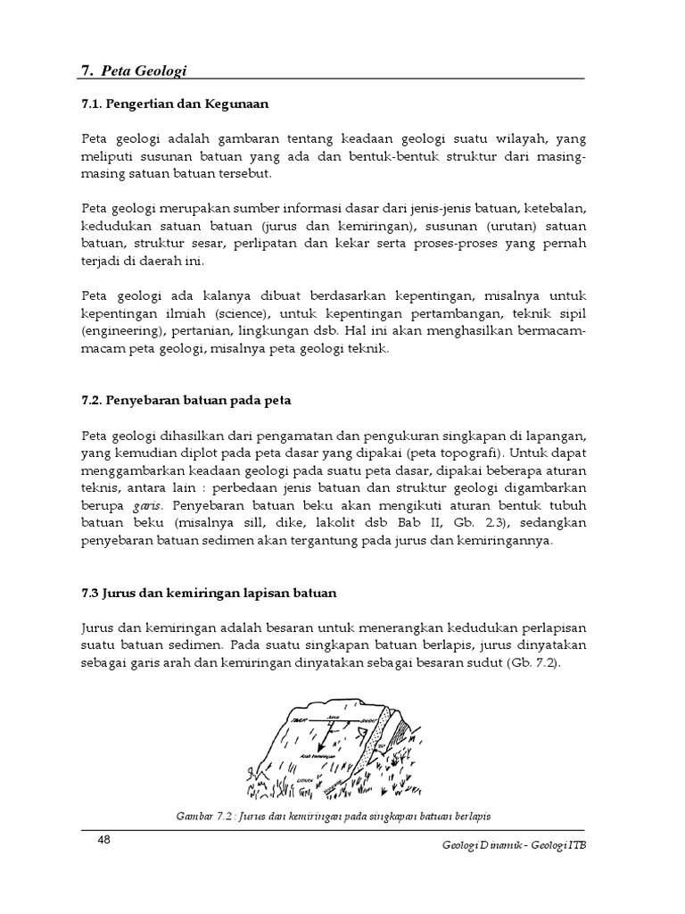 tegak lurus jurus lapisan batuan (Gb. 7.3).