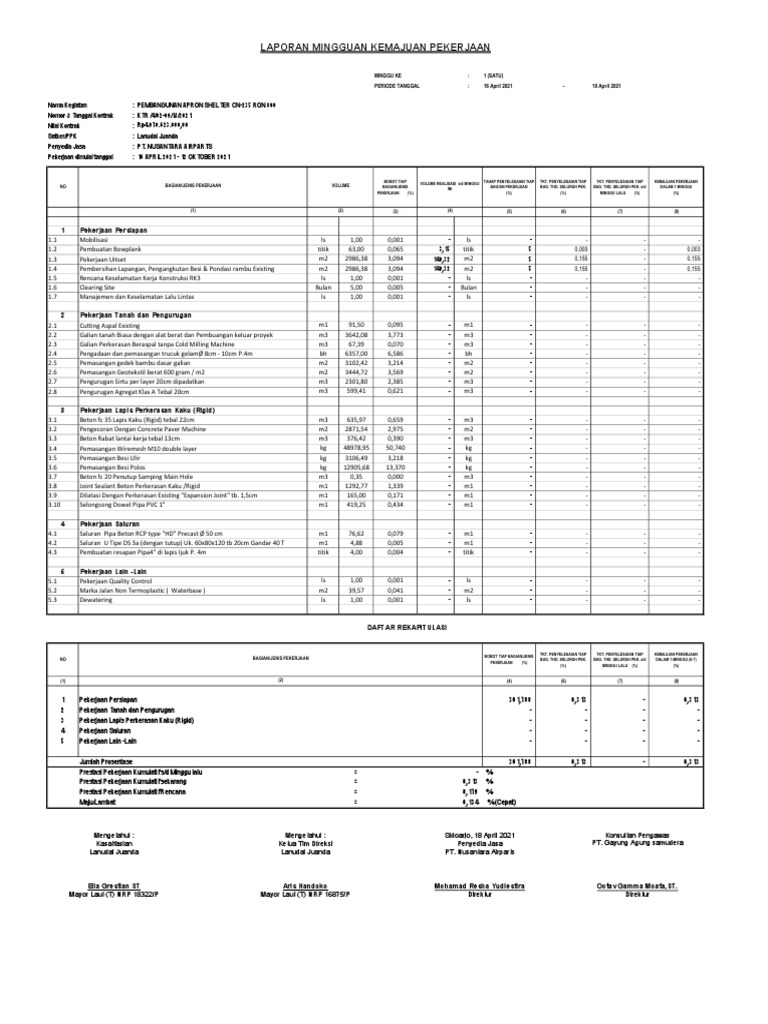 LAPORAN MINGGUAN KEMAJUAN PEKERJAAN