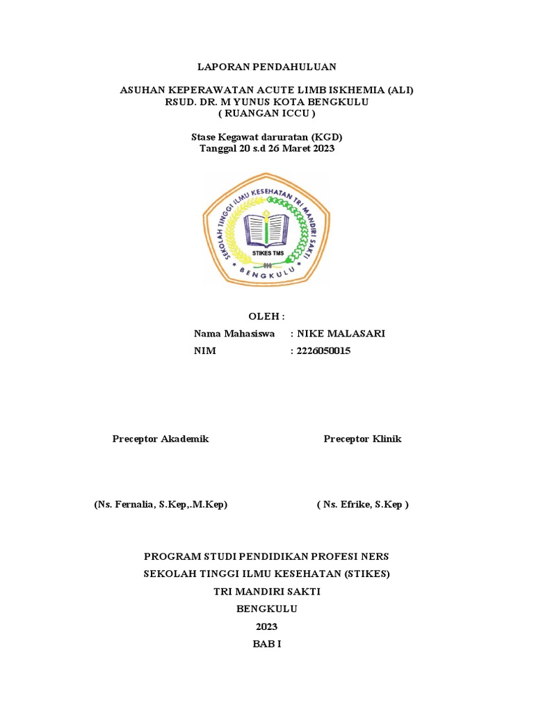 Acute Limb Ischemic (ALI) merupakan suatu kondisi dimana terjadi penurunan
