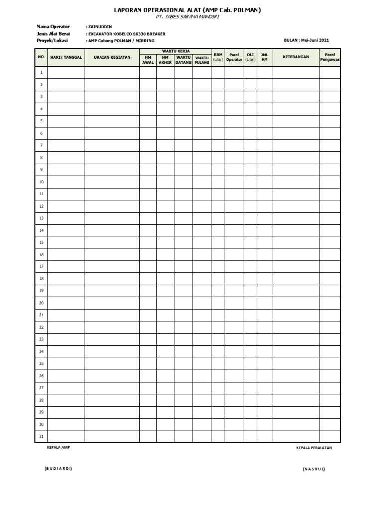 LAPORAN OPERASIONAL ALAT (AMP Cab. POLMAN)
