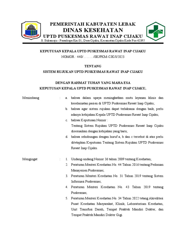 KEPUTUSAN KEPALA UPTD PUSKESMAS RAWAT INAP CIJAKU