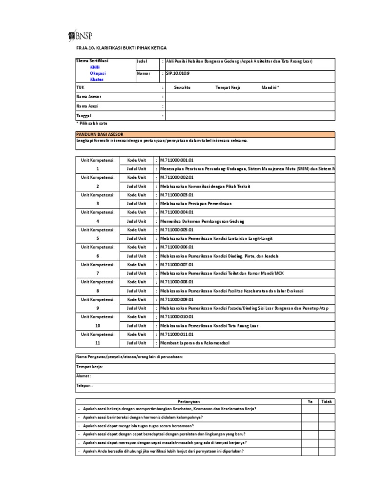 - Apakah asesi bekerja dengan mempertimbangkan Kesehatan, Keamanan dan Keselamatan Kerja?