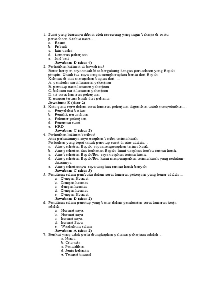 3. Kata ganti saya dalam surat lamaran pekerjaan digunakan untuk menyebutkan…