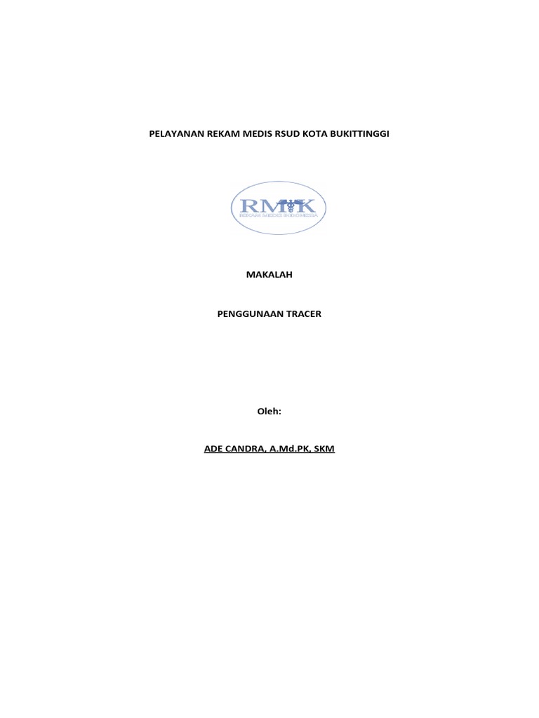 aannya tracer diletakkan sebagai pengganti pada tempat rekam medis yang diambil (dikelua