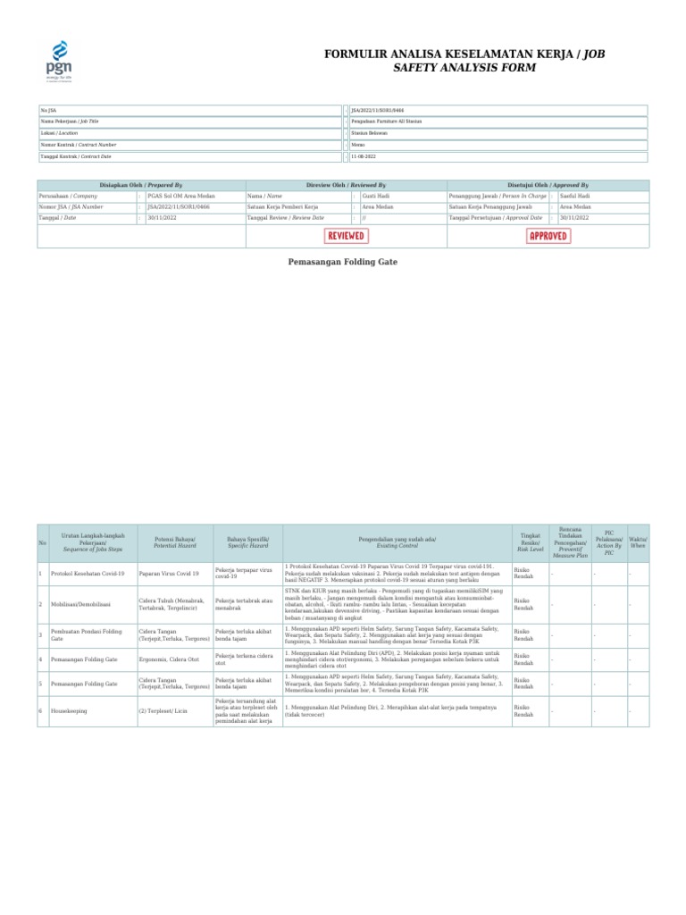 FORMULIR ANALISA KESELAMATAN KERJA / JOB