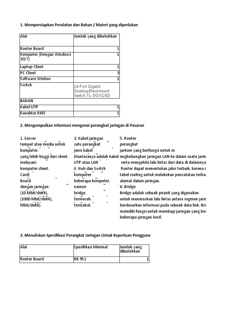 3. Menuliskan Spesifikasi Perangkat Jaringan Untuk Keperluan Pengguna