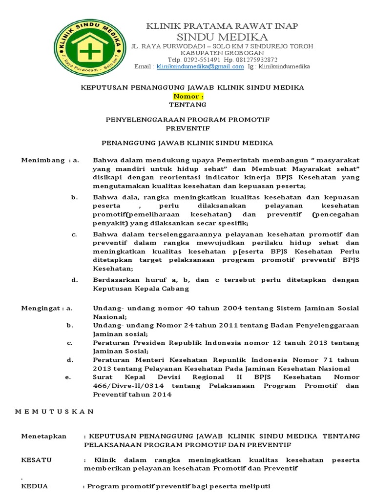 KEPUTUSAN PENANGGUNG JAWAB KLINIK SINDU MEDIKA