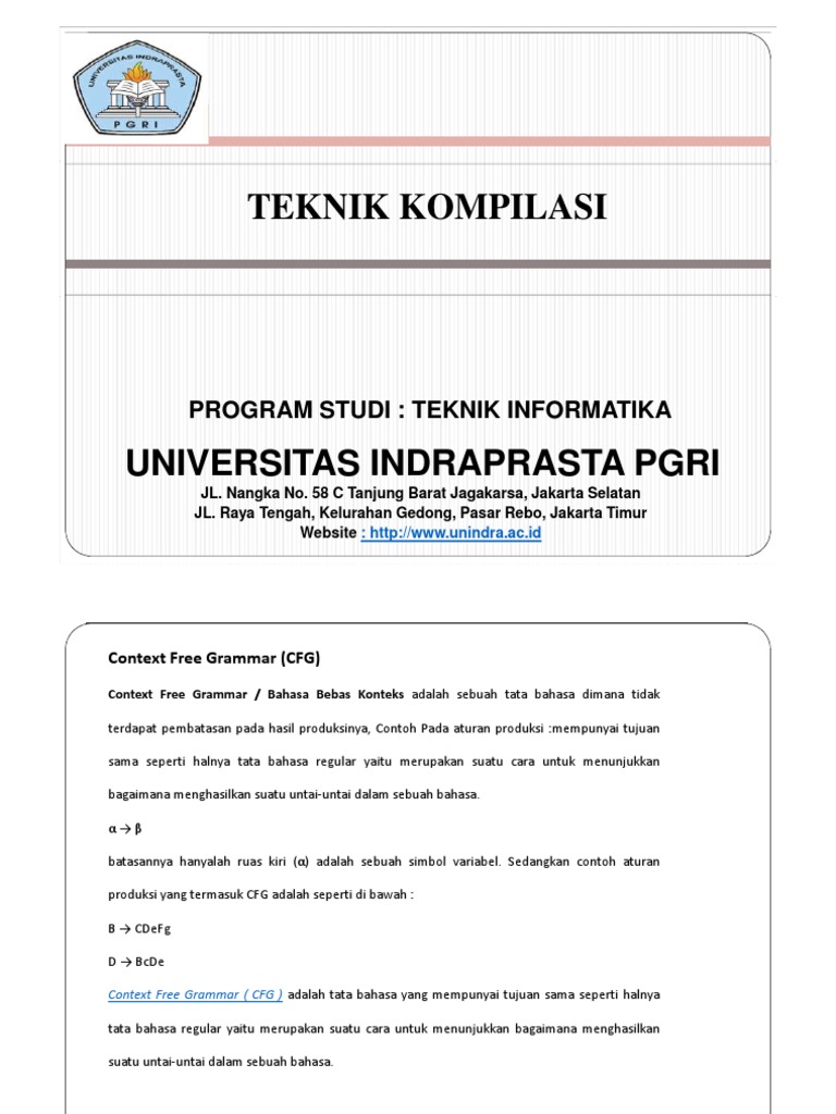 Context Free Grammar ( CFG ) adalah tata bahasa yang mempunyai tujuan sama seperti halnya