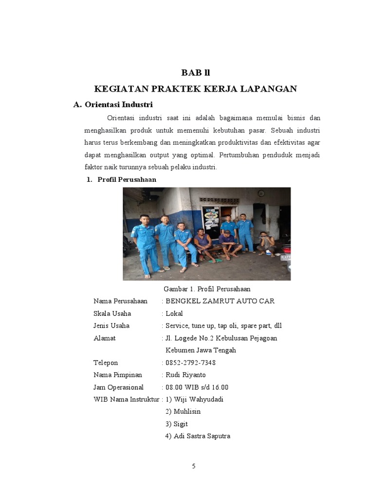 Nama Perusahaan : BENGKEL ZAMRUT AUTO CAR
