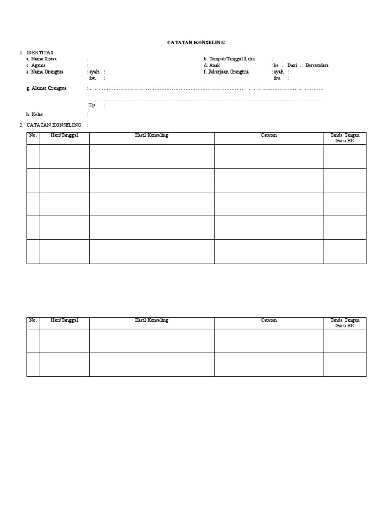 No. Hari/Tanggal Hasil Konseling Catatan Tanda Tangan