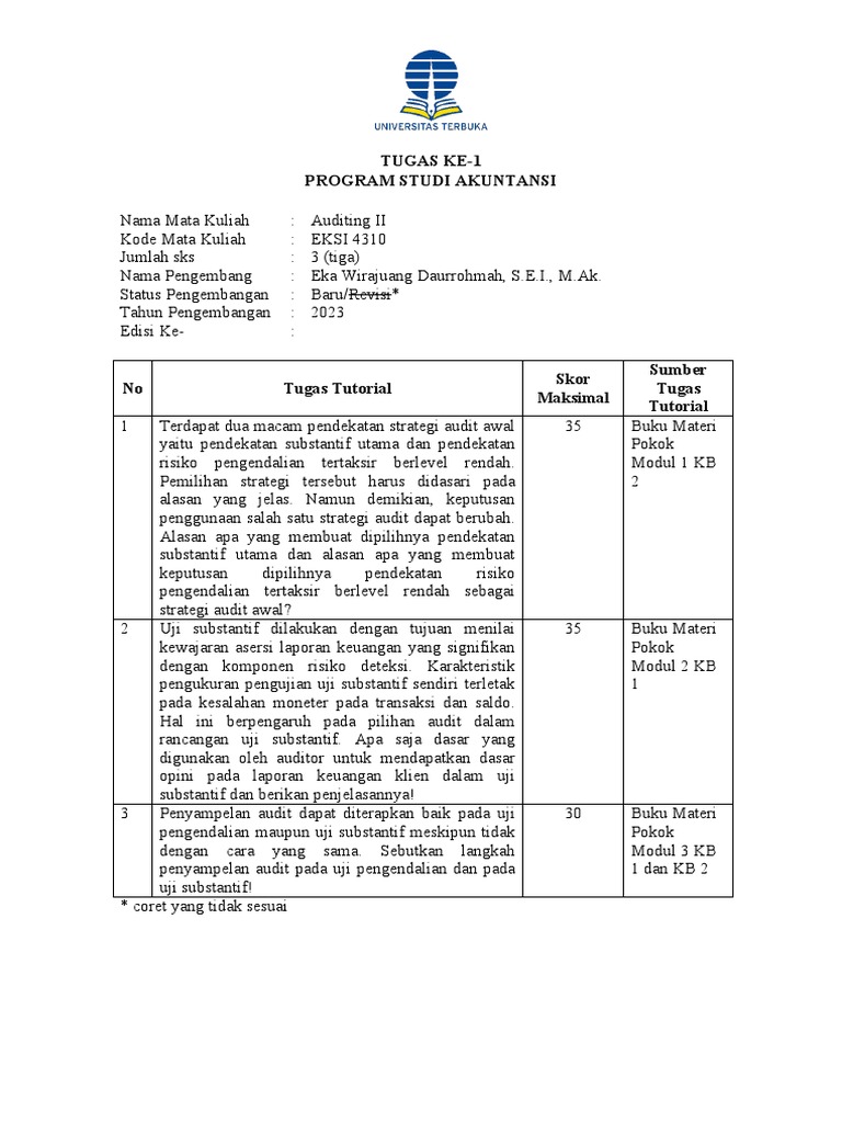 1 Terdapat dua macam pendekatan strategi audit awal 35 Buku Materi
