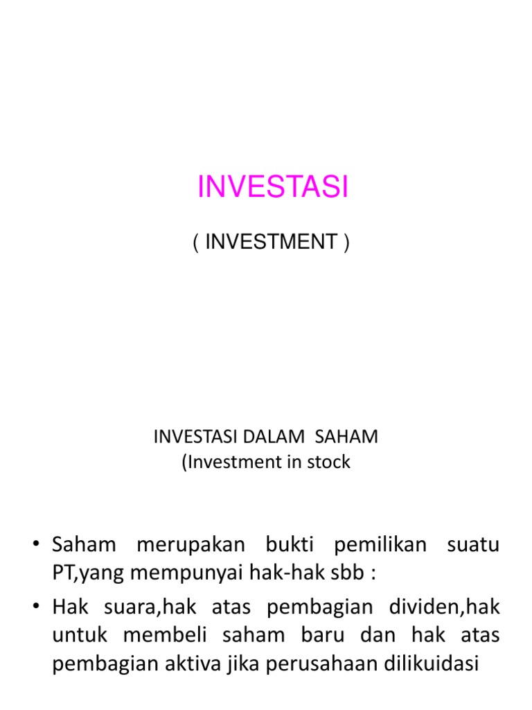 • Seperti juga terhadap investasi obligasi, apabila pada tanggal