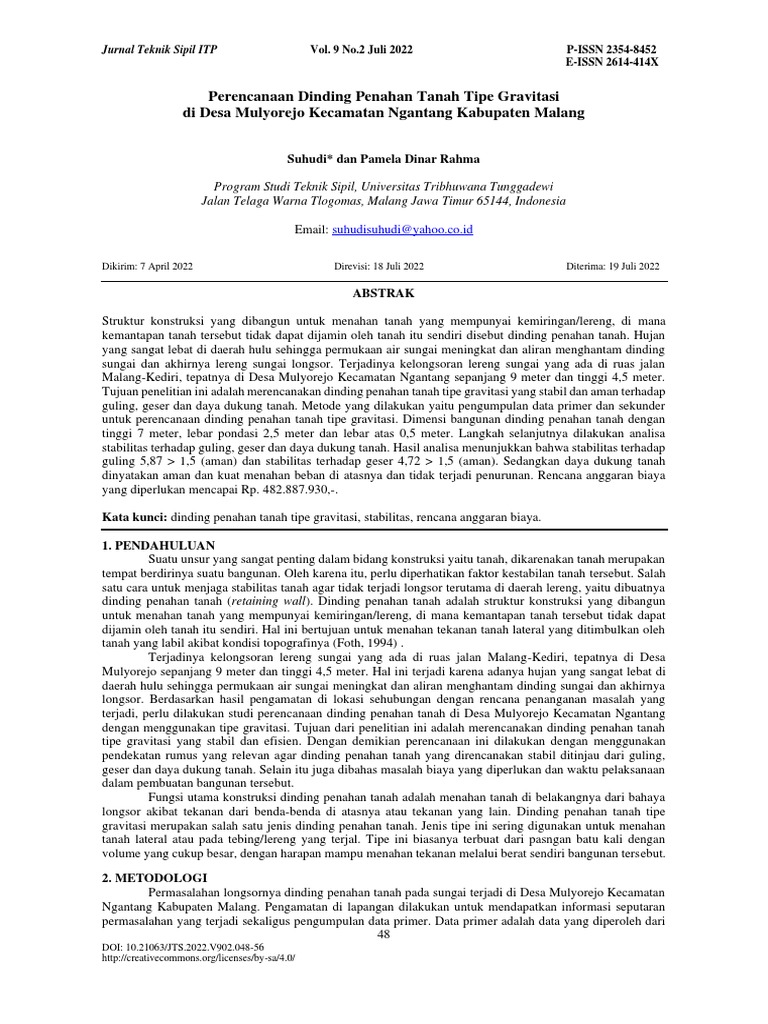 Suhudi, S., & Ehok, S. (2021). Evaluasi Stabilitas Dinding Penahan Tanah Tipe Kantilever di Desa Ngroto,