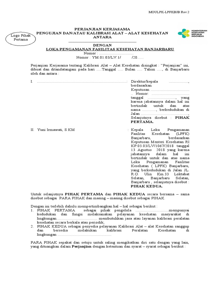 2. Perjanjian ini bertujuan untuk meningkatkan mutu pelayanan kesehatan di ....................