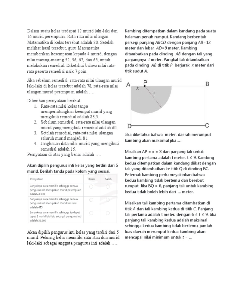 3. Setelah remedial, rata-rata nilai ulangan Jika diketahui bahwa meter, daerah merumput