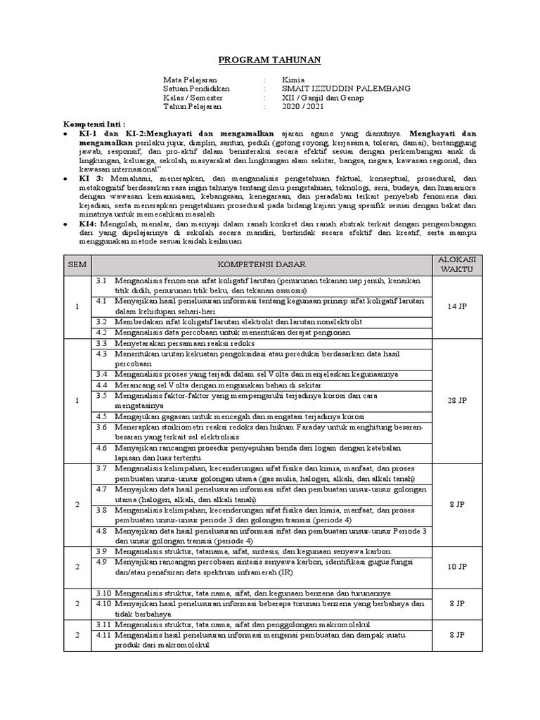 Kelas / Semester : XII / Ganjil dan Genap