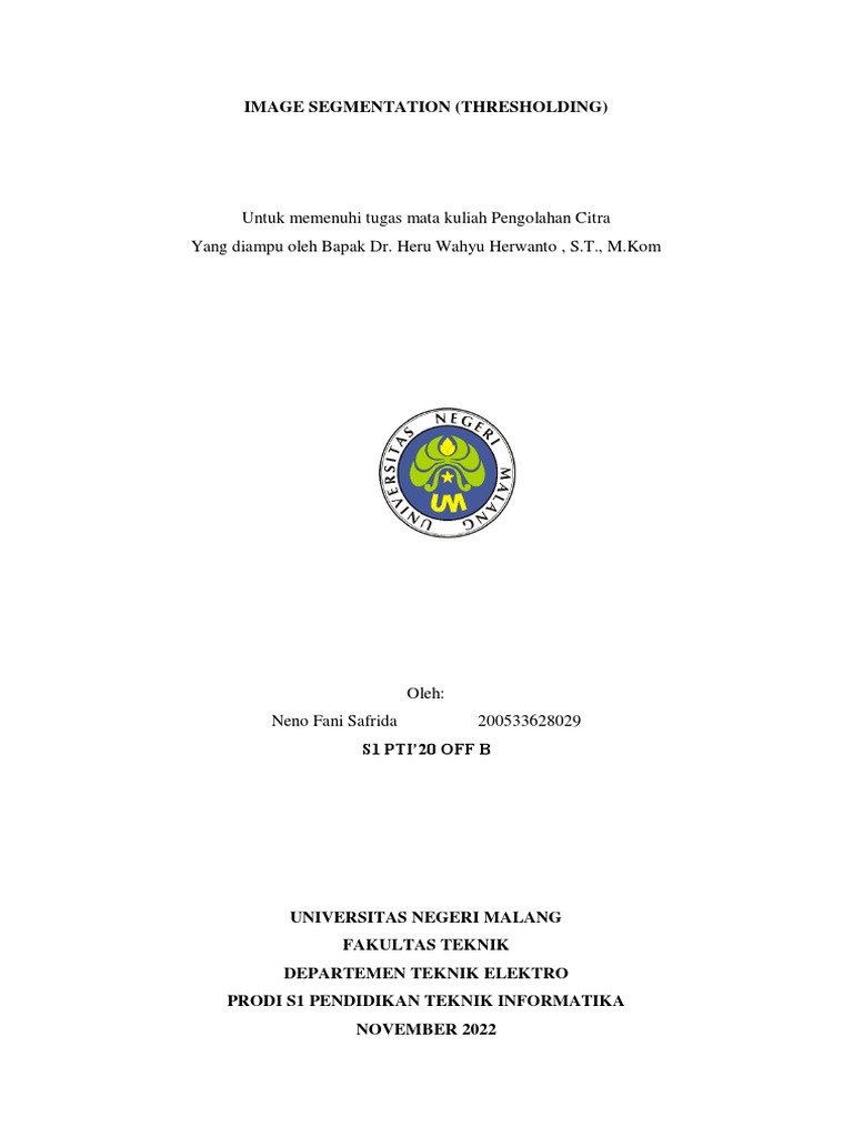 Untuk memenuhi tugas mata kuliah Pengolahan Citra