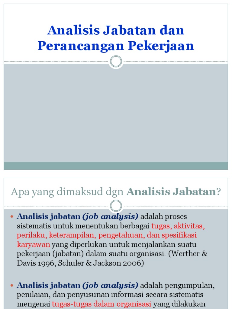 Analisis jabatan (job analysis) adalah pengumpulan,