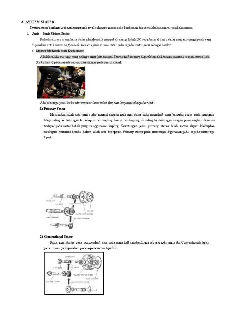 digunakan untuk memutar flywheel. Ada dua jenis sistem stater pada sepada motor yaitu sebagai berikut :