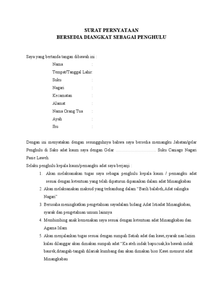 1. Akan melaksanakan tugas saya sebagai penghulu kepala kaum / pemangku adat