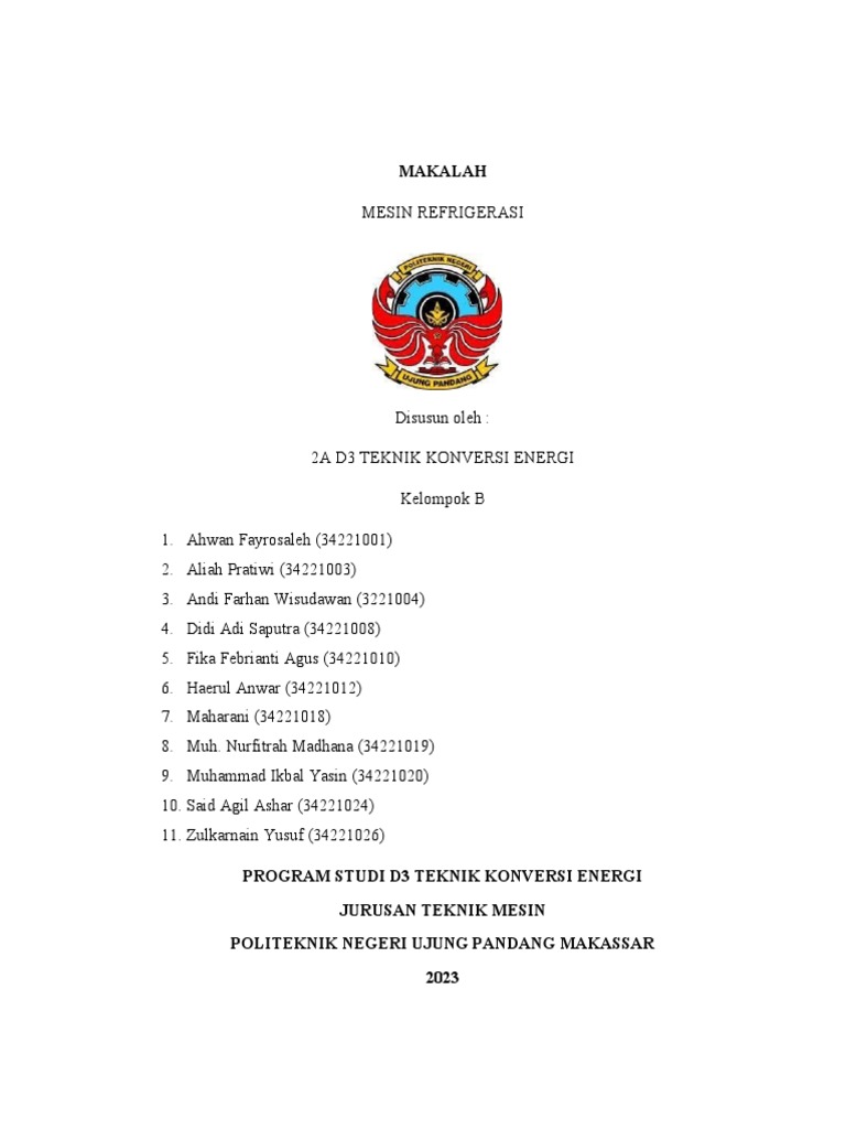rahmat-Nya sehingga makalah Mesin Refrigerator ini dapat tersusun hingga