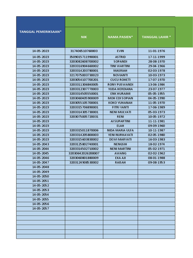 NIK NAMA PASIEN* TANGGAL LAHIR *