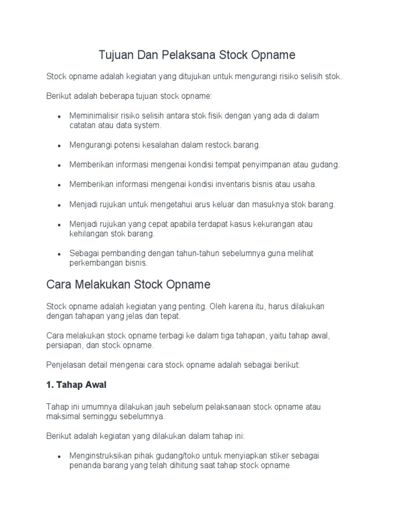 Penjelasan detail mengenai cara stock opname adalah sebagai berikut: