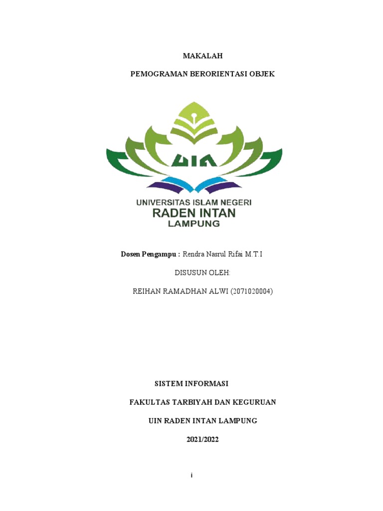 proses pembuatan makalah ini, dan dosen mata kulian Pemograman Berioentasi Objek yang