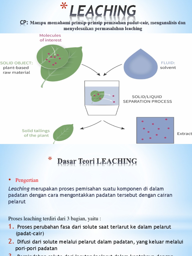 Leaching merupakan proses pemisahan suatu komponen di dalam
