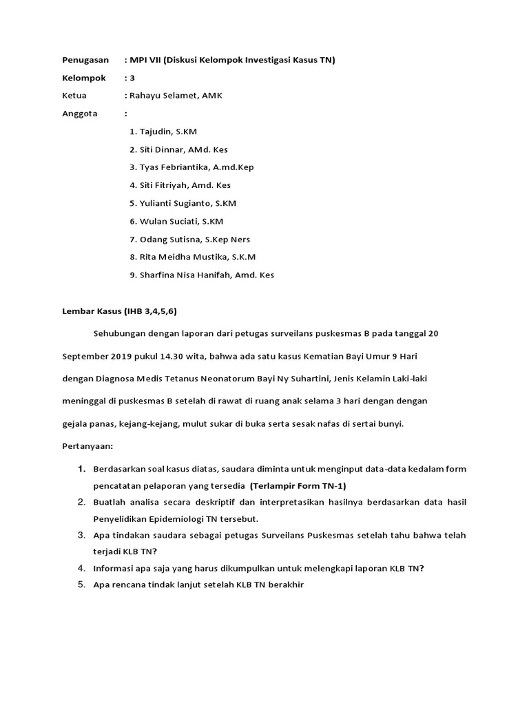 Penugasan : MPI VII (Diskusi Kelompok Investigasi Kasus TN)