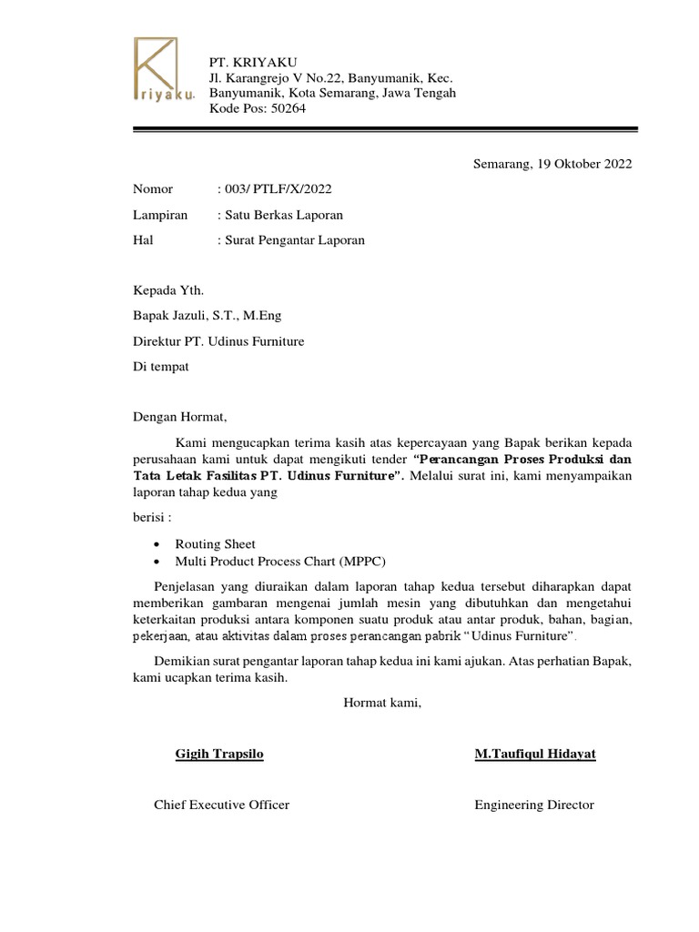Demikian surat pengantar laporan tahap kedua ini kami ajukan. Atas perhatian Bapak,