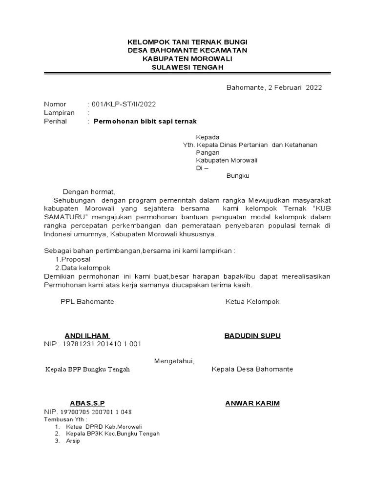 sehingga penyusunan permohonan bantuan penguatan modal usaha peternakan ini