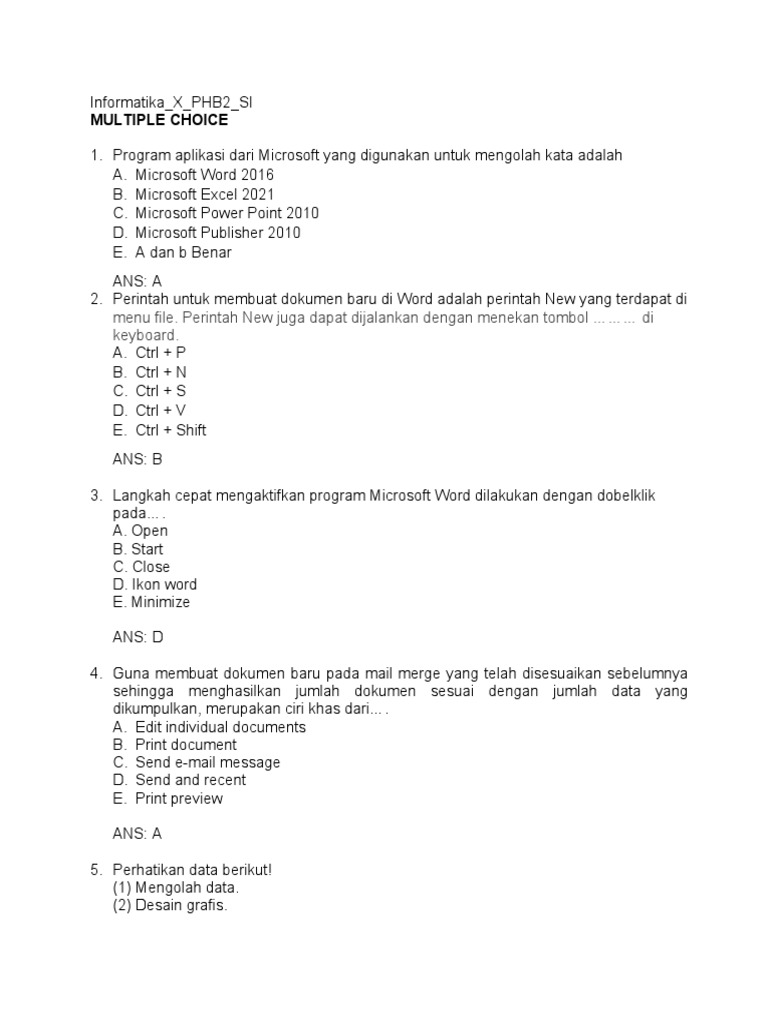 1. Program aplikasi dari Microsoft yang digunakan untuk mengolah kata adalah