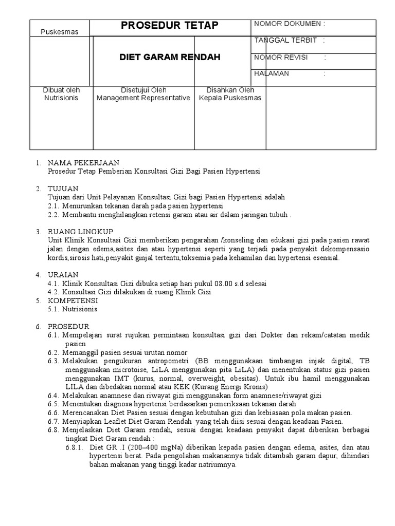 Prosedur Tetap Pemberian Konsultasi Gizi Bagi Pasien Hypertensi