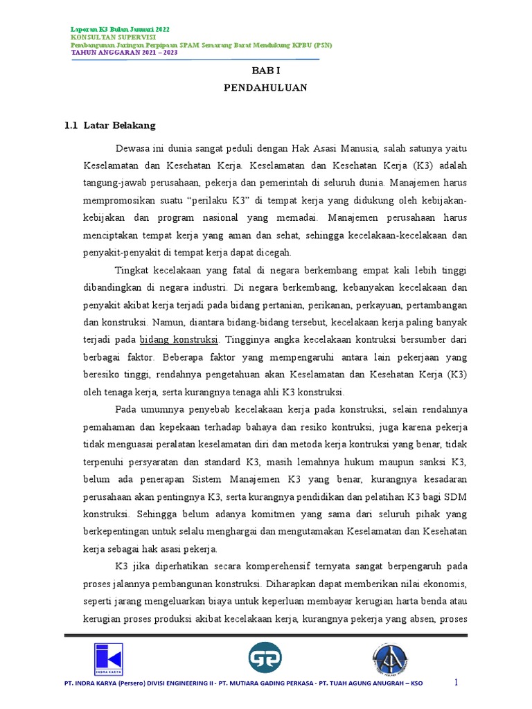 Laporan K3 Bulan Januari 2022
