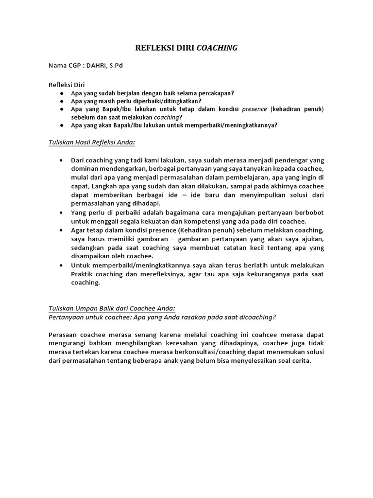 • Dari coaching yang tadi kami lakukan, saya sudah merasa menjadi pendengar yang