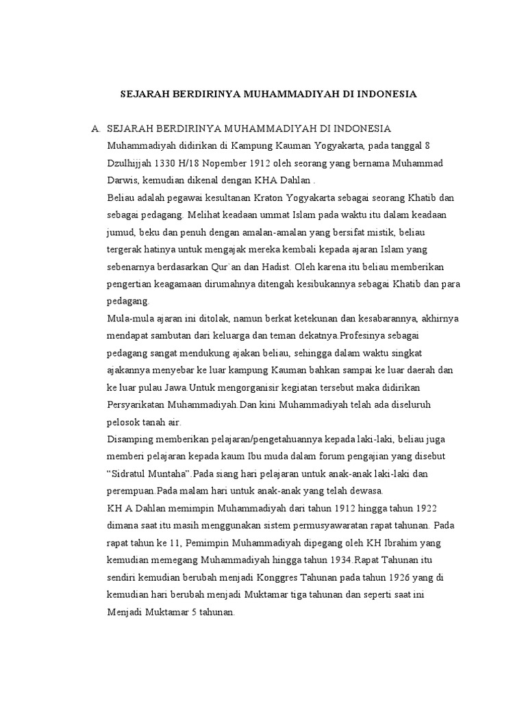 A. SEJARAH BERDIRINYA MUHAMMADIYAH DI INDONESIA