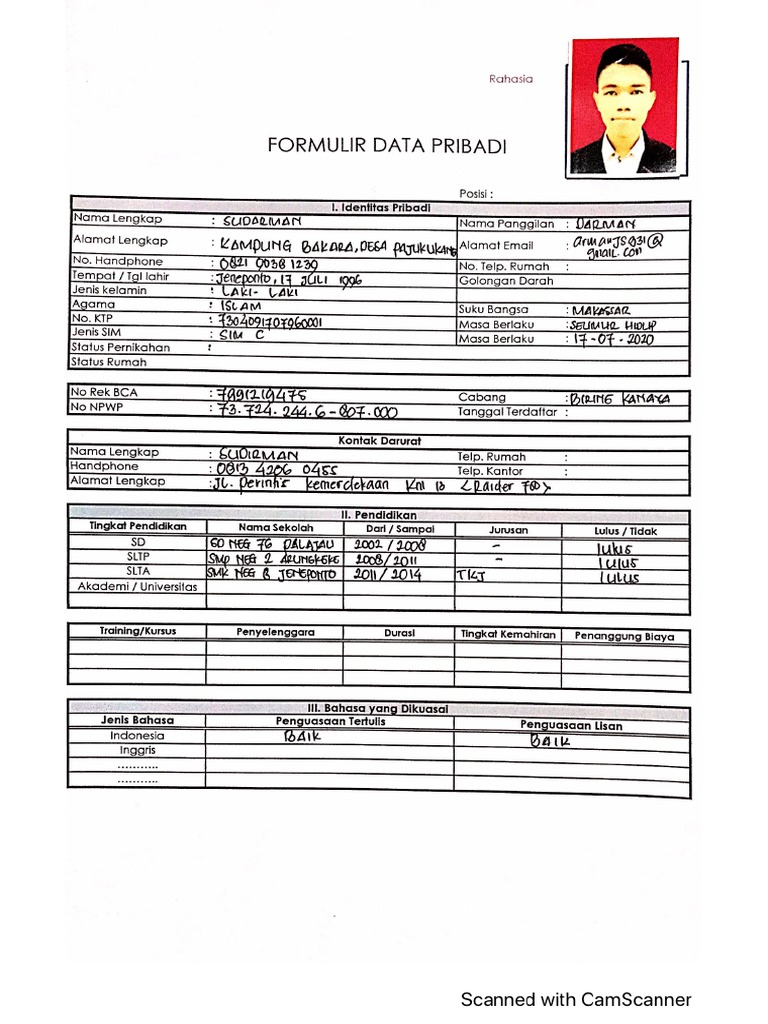 FORMULIR DATA PRIBADI